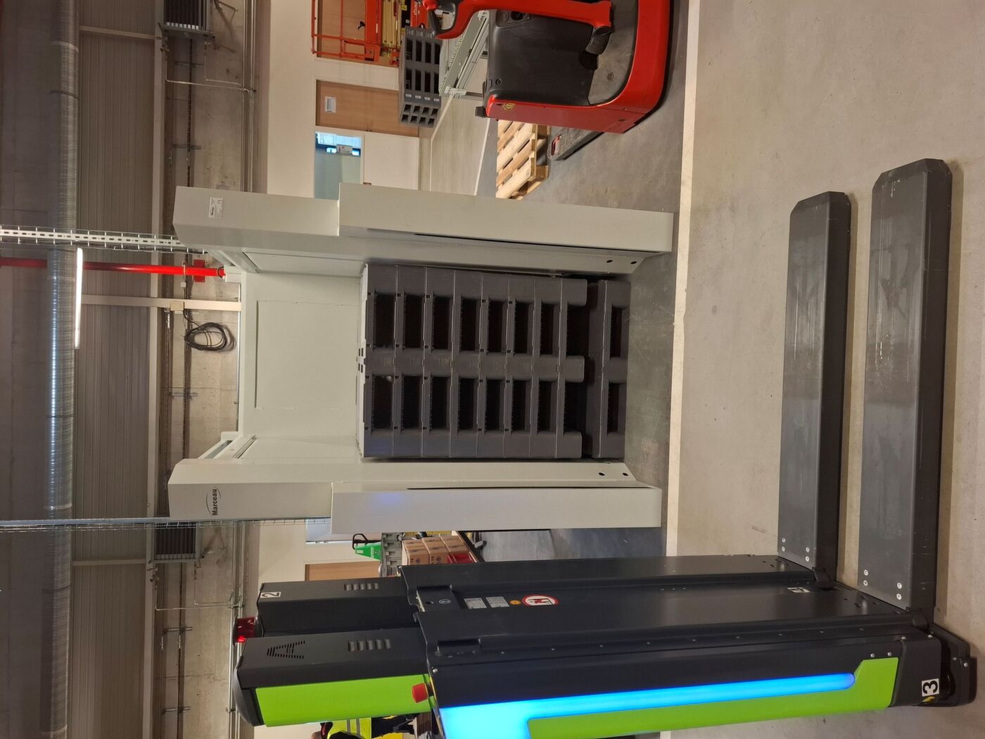 Grâce à leur savoir-faire et leur expérience, les bureaux d’études Marceau en mécanique et automatisme ont su adapter le Magapal® afin de le rendre compatible et complémentaire aux nouveaux systèmes tels que les AGV ou AMR.