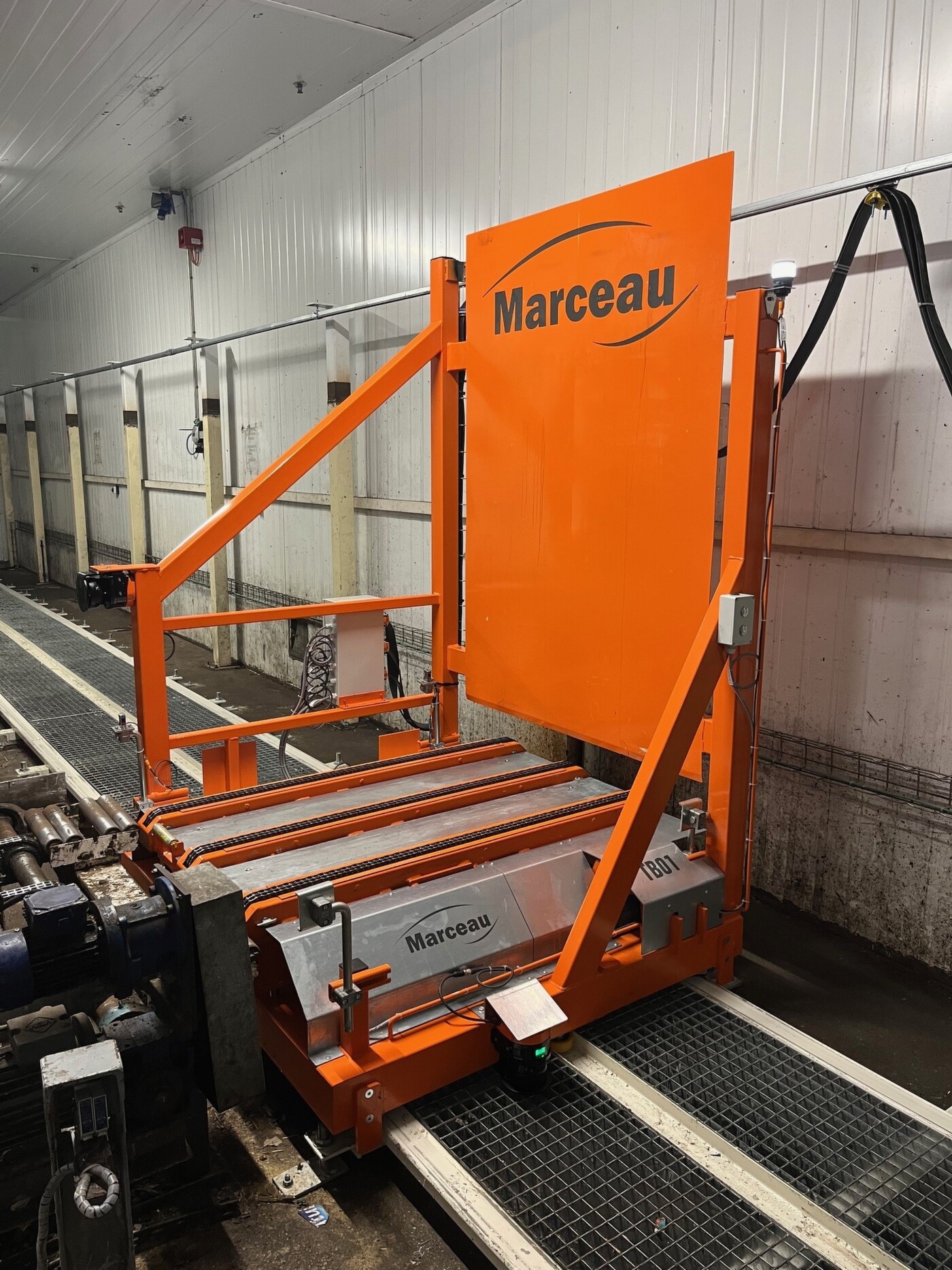 L’ensemble MARCEAU installé en 1993 est composé de convoyeurs disposés en entrée et en sortie de 4 tunnels de refroidissement ainsi qu'une navette à chaînes permettant l’évacuation des palettes en sortie de tunnel vers une ligne de filmage automatique.